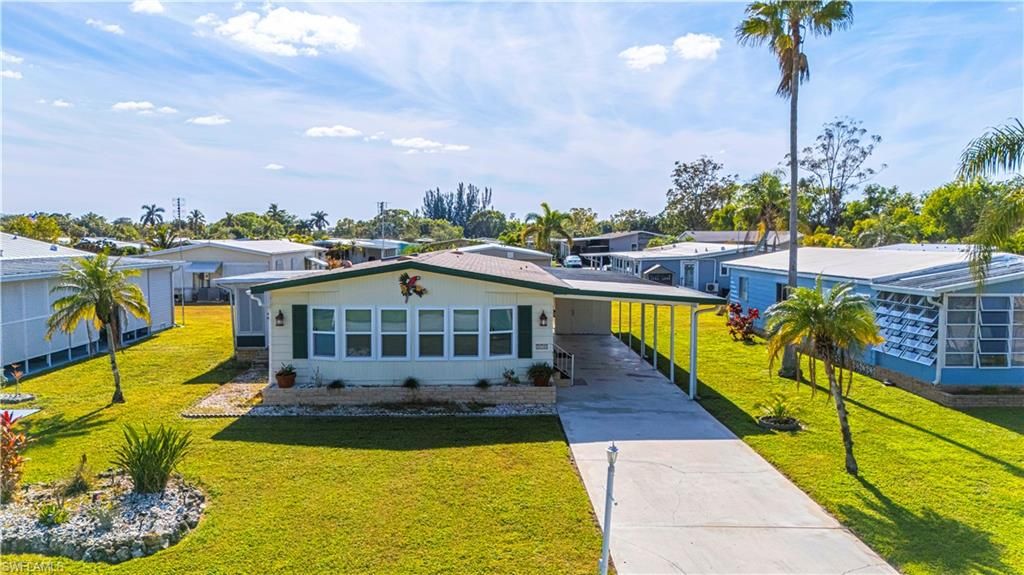 Looking for a cozy well-maintained partially furnished manufactured home on "your own land" nestled in the desirable 55+ community of West Wind Estates, then look no further. This home features a large open living room with built in entertainment center, bright natural skylight lit kitchen with breakfast bar, adjoining dinning room, an enclosed air conditioned sunroom perfect for enjoying a morning cup of coffee, a large master bedroom with full bath, guest bedroom with full bath, in unit laundry, newer laminate flooring throughout, covered carport with room for two cars and a detached storage shed. West Wind Estates offers excellent amenities, including a Clubhouse for social activities, Community Pool, Tennis, Billiards, Exercise area, Shuffleboard and Pickle-ball, creating a welcoming and vibrant community atmosphere with the convenience of a low-maintenance lifestyle. Conveniently located near shopping, dining, and the beautiful Gulf Coast beaches of both Naples and Marco Island. This is the perfect place to enjoy the Florida lifestyle!
